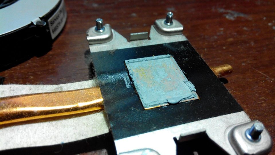 Между теплоотводом радиатора системы охлаждения ноутбуа и поверхностю процессора и чипов наносится теплопроводная паста. Она необходима для того, чтобы заполнить мелкие неровности на поверхности и тем самым увеличить теплопроводность. Но с течением времени любая термопаста, даже самая дорогая, имеет свойство высыхать.